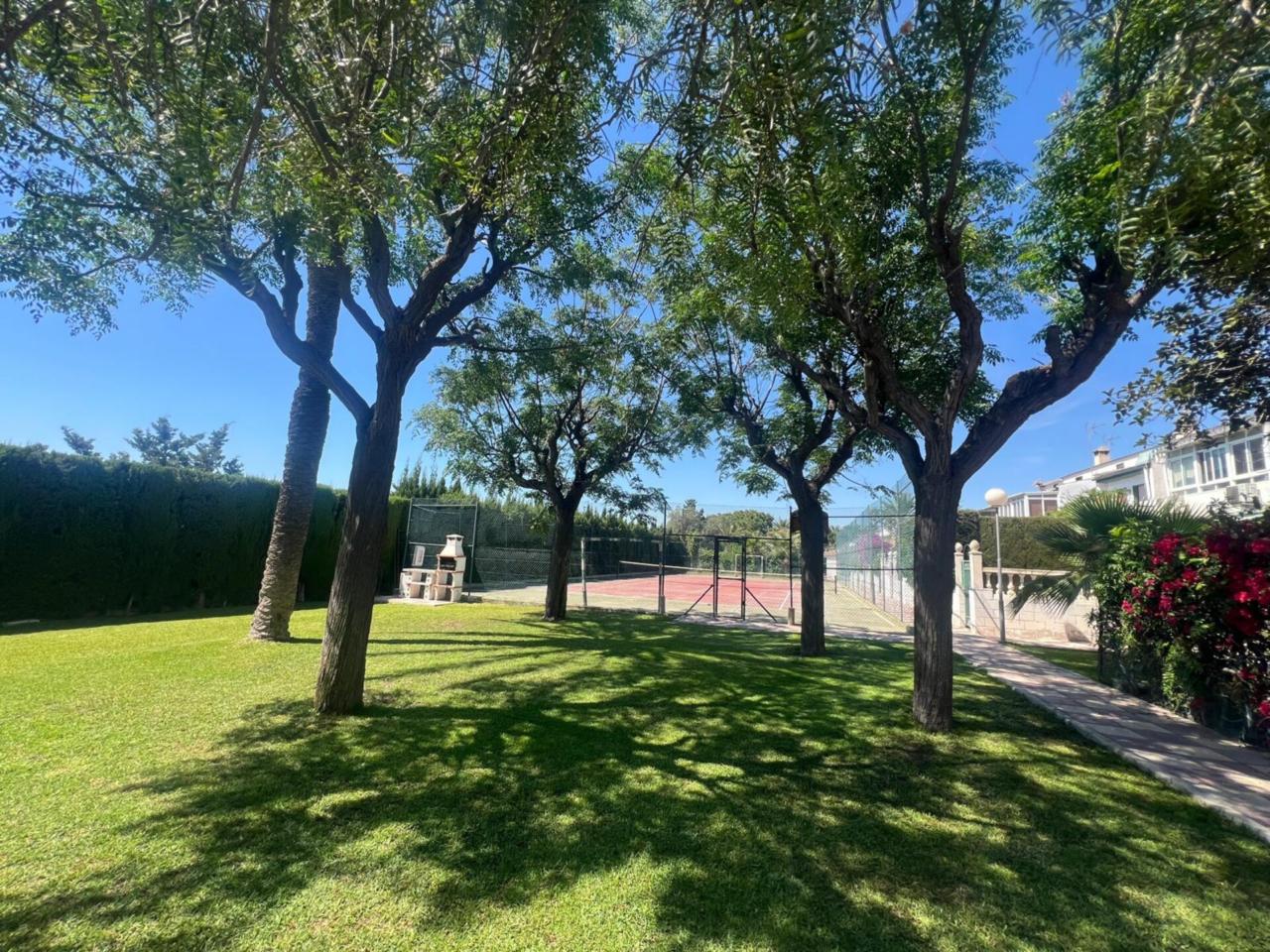 DescripciónDESCUBRA SU NUEVO HOGAR EN UNAS DE LAS MEJORES ZONAS DE LA CIUDAD. A 400 metros del mar. Este inmueble ofrece una orientación sur que garantiza luz natural durante todo el día. De dos plantas, las cuales se distribuyen de la siguiente forma. Planta baja con dos amplias terrazas (delantera y trasera), idealesbpara relajarse o compartir momentos inolvidables con amigos y familiares desde las cuales se accede a la vivienda, por el salón o por la cocina, salón comedor con chimenea y split de aire acondicionado, amplia cocina, baño completo y dormitorio, también dispone de una estancia que en la actualidad esta como trastero, pero que se puede volver a recuperar como dormitorio. Primera planta con cuatro dormitorios, todos ellos con split de aire acondicionado frio calor, toma de tv, toma de cable para fibra y con sistema de surround en el dormitorio principal, dos baños completos con plato de ducha con hidromasaje y con espejo con altavoz bluetooth en el baño exterior. Los tres baños de la vivienda han sido renovados en enero de 2.025 con fontanería cambiada. Además, la propiedad incluye un garaje privado y aparcamiento comunitario, asegurando que siempre tenga espacio para su vehículo. La urbanización es un verdadero oasis de entretenimiento, con piscina, zonas verdes, pista de tenis y un campo de fútbol. También hay una zona de barbacoa para disfrutar de agradables veladas. A solo 2 minutos de la Playa Carrer la Mar y con la parada del TRAM a 5 minutos a pie, la ubicación es inmejorable. Supermercados, restaurantes y otros servicios están a tu alcance, haciendo de este chalet adosado el hogar ideal para disfrutar de la vida en la costa. No dude en consultarnos y se la mostramos sin compromiso, también trabajamos con servicio de visitas concertadas fines de semana y festivos. Información general