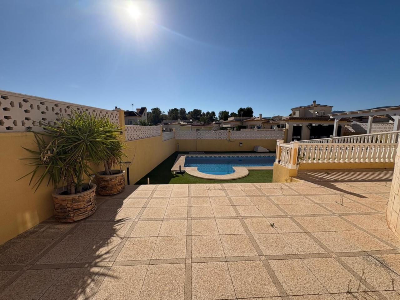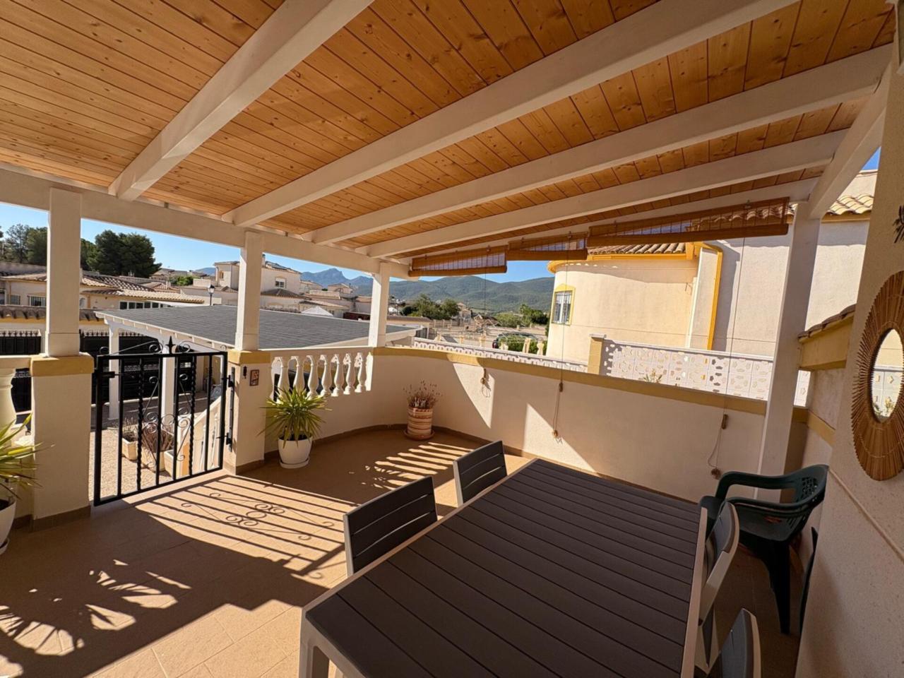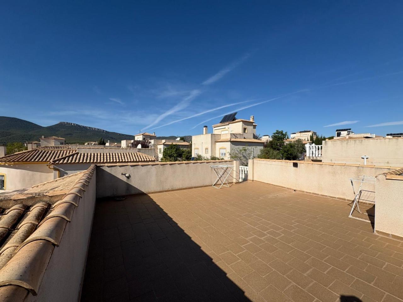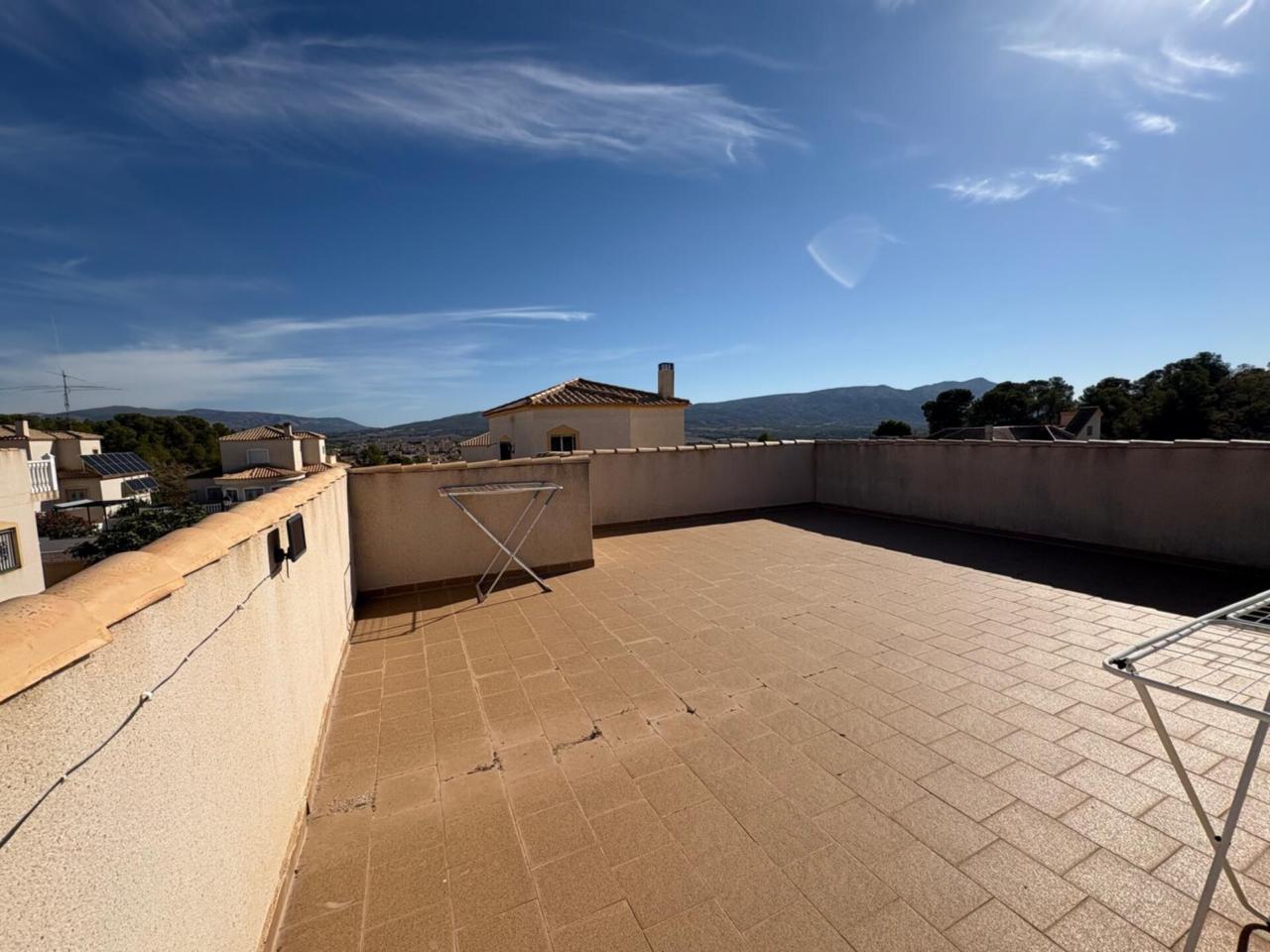 DescripciónEn el municipio de Castalla se encuentra esta espaciosa casa de una planta, 116 metros cuadrados construidos, 102 metros utiles. Vivienda con amplia terraza que deja distrutar de unas espectaculares vistas al Maigmo y toda su naturaleza. Amplio salón comedor con salida a una terraza de 20 metros cuadrados, dispone de chimenea y tambien aire acondicionado, los suelos son de barro, la cocina es independiente con posibilidad de hacerla cocina abierta tirando un tabique.. y la cual da acceso a la parte de atrás de la parcela y la subida por una escalera exterior al solarium. de unos 40 m2 con instalación eléctrica y agua con lo cual se puede incluso realizar dos dormitorios mas , y un baño completo tambien, o habilitarlo como un espacio de ocio, un sin fin de posibilidades. Tambien tiene la zona de lavandería y trastero. Dispone de 3 dormitorios dobles con armarios empotrados, uno de los dormitorios tambien dispone de aire acondicionado, ,2 baños completos reformados con ventana uno de ellos con plato de ducha y el otro con bañera en dormitorio principal. La vivienda cuenta con materiales de alta calidad, puertas de pino y ventanas climalit oscilobatientes en todas las estancias. La parcela de 500 metros cuadrados rodea toda la propiedad y dispone de un porche para dos coches, piscina con buena orientación de sol de mañana Amplio Sótano con luz y agua. No deje pasar esta excelente Oportunidad para disfrutar de un ambiente tranquilo e ideal para familias. En ALCARAZ INMOBILIARIA, estaremos encantados de concertar visita en el telefono: 965 298399 trabajamos, sabados, domingos y festivos con cita previa.