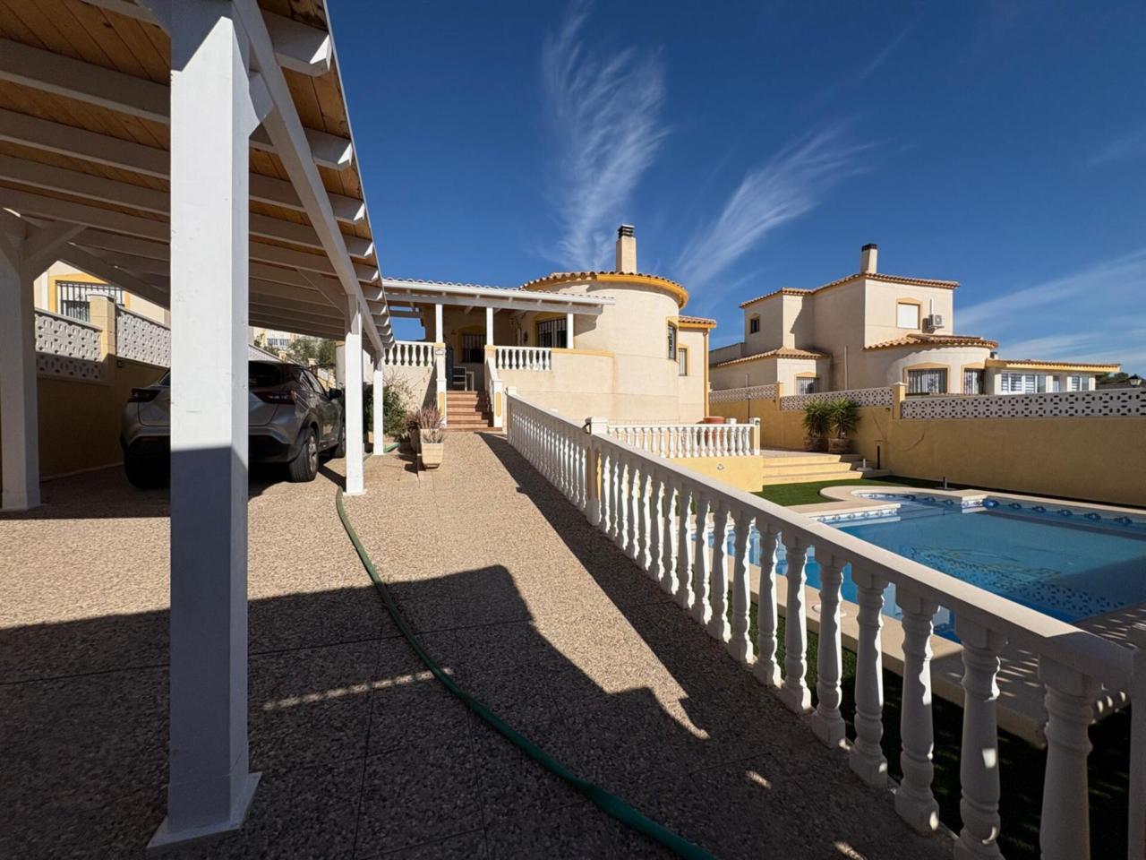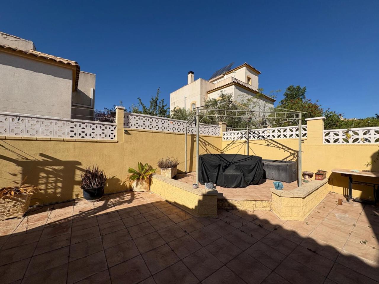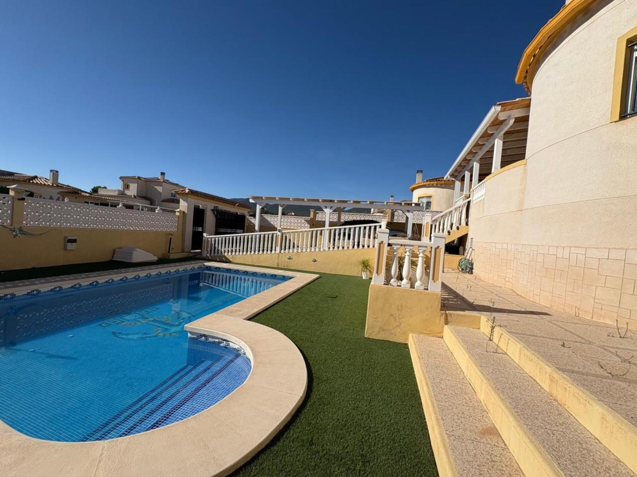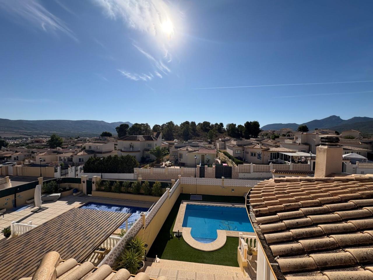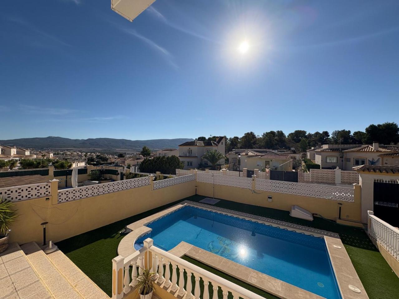 DescripciónEn el municipio de Castalla se encuentra esta espaciosa casa de una planta, 116 metros cuadrados construidos, 102 metros utiles. Vivienda con amplia terraza que deja distrutar de unas espectaculares vistas al Maigmo y toda su naturaleza. Amplio salón comedor con salida a una terraza de 20 metros cuadrados, dispone de chimenea y tambien aire acondicionado, los suelos son de barro, la cocina es independiente con posibilidad de hacerla cocina abierta tirando un tabique.. y la cual da acceso a la parte de atrás de la parcela y la subida por una escalera exterior al solarium. de unos 40 m2 con instalación eléctrica y agua con lo cual se puede incluso realizar dos dormitorios mas , y un baño completo tambien, o habilitarlo como un espacio de ocio, un sin fin de posibilidades. Tambien tiene la zona de lavandería y trastero. Dispone de 3 dormitorios dobles con armarios empotrados, uno de los dormitorios tambien dispone de aire acondicionado, ,2 baños completos reformados con ventana uno de ellos con plato de ducha y el otro con bañera en dormitorio principal. La vivienda cuenta con materiales de alta calidad, puertas de pino y ventanas climalit oscilobatientes en todas las estancias. La parcela de 500 metros cuadrados rodea toda la propiedad y dispone de un porche para dos coches, piscina con buena orientación de sol de mañana Amplio Sótano con luz y agua. No deje pasar esta excelente Oportunidad para disfrutar de un ambiente tranquilo e ideal para familias. En ALCARAZ INMOBILIARIA, estaremos encantados de concertar visita en el telefono: 965 298399 trabajamos, sabados, domingos y festivos con cita previa.