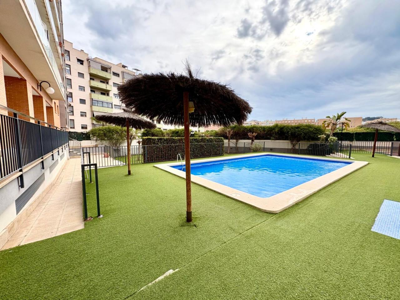 Vivienda VPO. El piso dispone de 3 habitaciones dobles con armarios empotrados, aire acondicionado en toda la vivienda, ventanas climalit, cocina independiente con galería, suelos de tarima de roble y un salón muy amplio y luminoso, ideal para familias que buscan confort, espacio y calidad de vida en Alicante. La vivienda está situada en una primera planta , con vistas despejadas a la urbanización y a la Vía Parque, dentro de una urbanización privada con zonas comunes, piscina, parque infantil, trastero y parking subterráneo, con plaza de aparcamiento muy amplia y posibilidad de alquilar una segunda plaza de garaje.